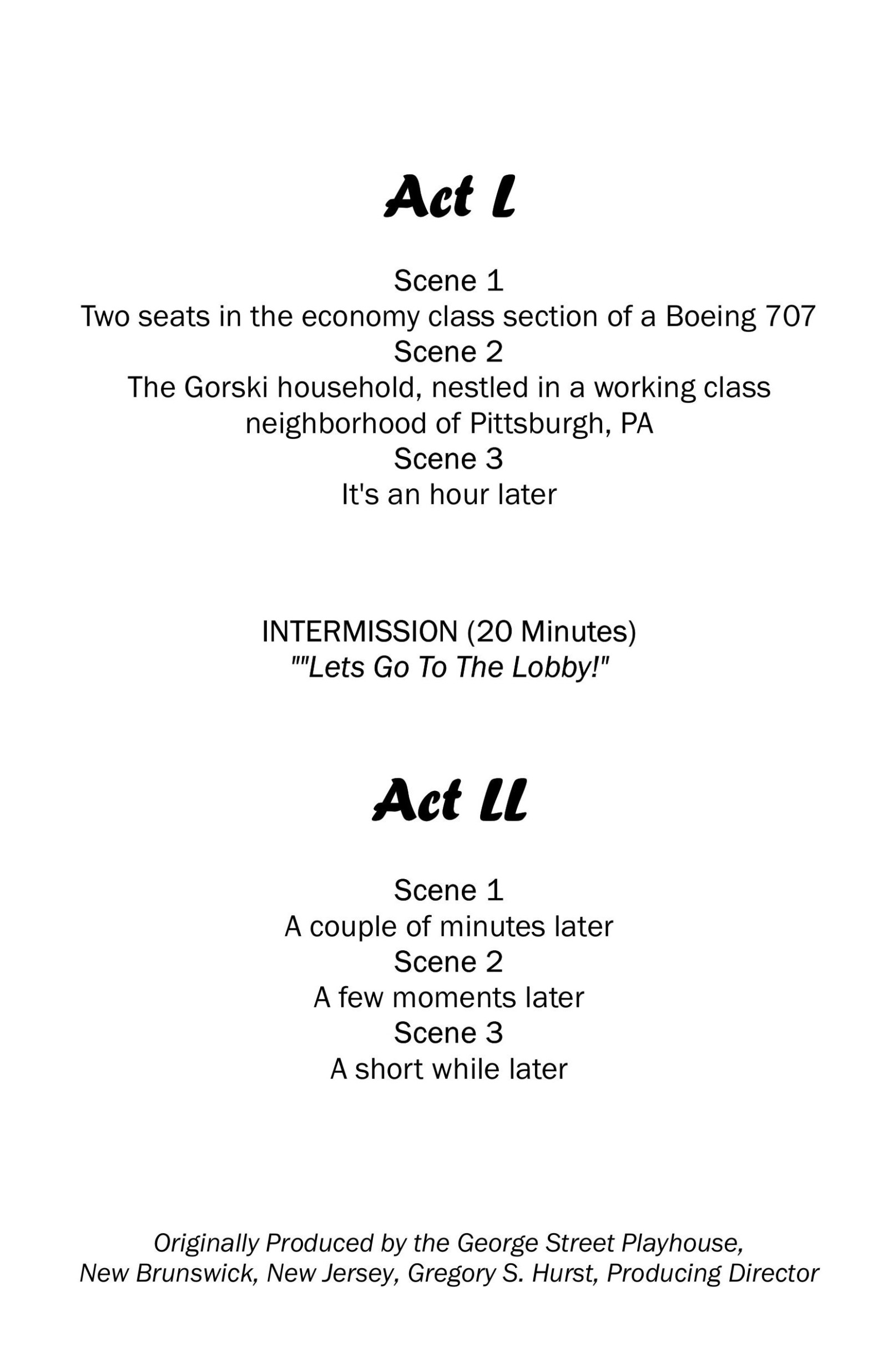 Written by Tom Dudzick. Premiered in 1990 at George Street Playhouse, New Brunswick, NJ.