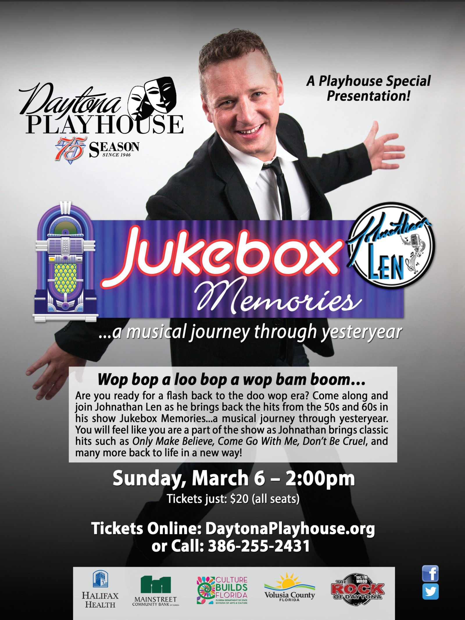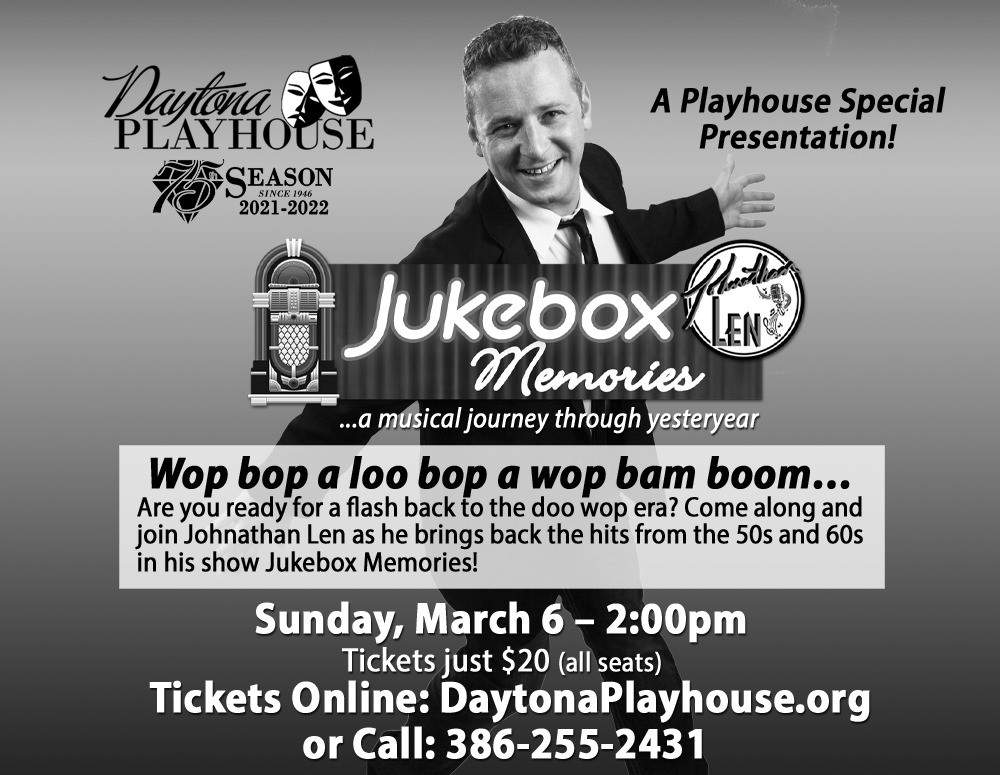 Wop bop a loo bop a wop bam boom... Are you ready for a flash back to the doo wop era? Come along and join Johnathan Len as he brings back the hits from the 50s and 60s in his show Jukebox Memories...a musical journey through yesteryear. You will feel like you are a part of the show as Johnathan brings classic hits such as Only Make Believe, Come Go With Me, Donโt Be Cruel, and many more back to life in a new way!